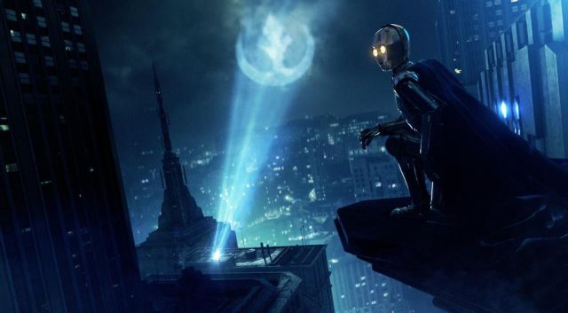 JJ no podía dejarlo estar y siguió mostrando a un C·3PO batmanizado y respondiendo a la llamada de la Bat-señal pero esta vez con el símbolo rebelde…